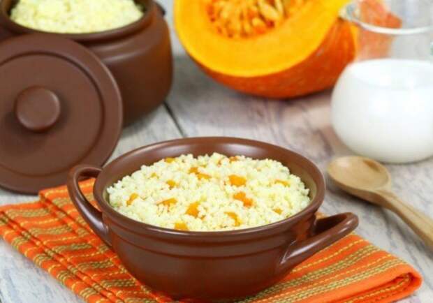 Варите пшённую кашу, как и обычно, не забывая про соль и сахар, добавляете кокосовое молоко и выкладываете на тарелку. Сверху украшаете вареньем из облепихи и тыквы (называется чатни, можно купить в магазине) или любым другим, например абрикосовым. Посыпаете попкорном и, если хотите, сахарной пудрой.